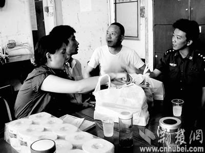 64歲的程婆婆拉著曉軍(化名)的手說(shuō):“兒啊,快看誰(shuí)來(lái)了?”曉軍抬起頭,發(fā)現(xiàn)接見(jiàn)室里除了母親外,還有武昌紫陽(yáng)街起義門社區(qū)黨委書記袁先高、管段民警方文等一行8人,手里提著紙巾、拖鞋、毛巾等日常用品,還有他最愛(ài)吃的鴨脖子和鹵蹄。