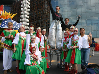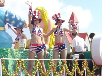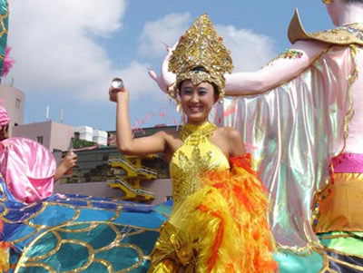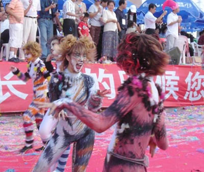 今天上午在新海廣場舉行的第六屆大連狂歡節(jié),更是使歡樂的海洋里掀起了歡樂的海潮。來自國內(nèi)外的24支狂歡巡游隊(duì)伍,以花團(tuán)錦簇的民族服裝和極度夸張的藝術(shù)手法,演繹了航天、花神、特洛伊木馬、梁山伯與祝英臺、孔雀仙子、海底動物、蝴蝶服飾、阿凡提、醉酒、美人魚、回娘家、貓友、豪華游覽馬車、日月潭傳說、堂吉訶德、木偶奇遇、狐假虎威、寶蓮燈、海娃與王子、小櫻丸子、尼爾斯騎鵝記、阿里巴巴、輪滑表演等國內(nèi)外著名童話,電影故事等。最為耀眼的是以音樂劇《貓》的扮相出場的表演隊(duì)伍,他們獨(dú)特的表演和造型贏得了在場觀眾最多的歡呼聲。狂歡的服裝藝術(shù)巡游,吸引了數(shù)萬國內(nèi)外游客和當(dāng)?shù)孛癖姷挠^賞。