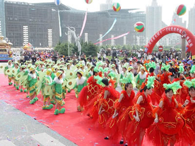 在遍布大連城100多個(gè)廣場上,形式多樣的民間文體活動,與狂歡節(jié)巡游隊(duì)伍遙相呼應(yīng)。