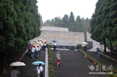 當(dāng)日下午,采訪團(tuán)一行來到了井岡山革命烈士陵園。園區(qū)位于茨坪北面的北巖峰上。抵達(dá)目的地后,首先映入眼簾的是“井岡山革命烈士陵園”九個(gè)燙金大字,據(jù)介紹,這幾個(gè)字是參加過井岡山斗爭(zhēng)的老紅軍宋任窮同志題寫的。