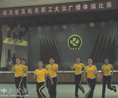 荊楚網(wǎng)消息(記者吳彬彬 馮海燕)今天上午,湖北省直機(jī)關(guān)工會(huì)、省機(jī)關(guān)體育協(xié)會(huì)在省腫瘤醫(yī)院舉行了省直機(jī)關(guān)職工大眾廣播體操比賽,共有來自省委辦公廳、省人大辦公廳等28家省直單位近700名職工參加了此次比賽。