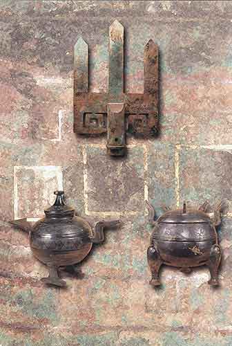 青銅山字形器:推測為建筑構(gòu)件(上,高119厘米)