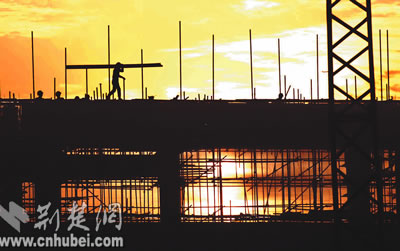 昨日,省藝術館建筑工地上,工人師傅迎著朝霞在樓頂做清理工作。當日,省藝術館主體工程封頂。據(jù)了解,省藝術館是為第八屆中國藝術節(jié)在我省舉辦而興建的重要場館,占地面積二十三畝,建筑總面積二萬多平方米,預計于明年底竣工。