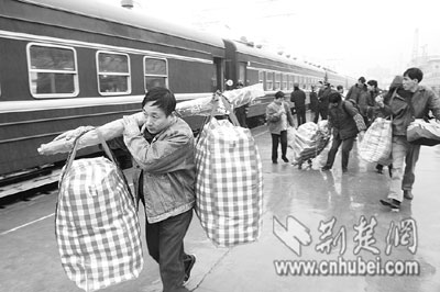 ?10分鐘后,這趟民工專列駛離武昌站,于昨晚20時20分到達襄樊。據(jù)武昌站介紹,節(jié)前的民工專列多從南方發(fā)往武漢,節(jié)后武漢鐵路局將加開大量南下、東進的民工專列。