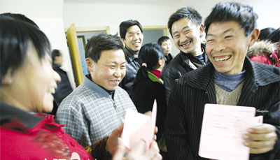 農(nóng)民工昨日領(lǐng)到我市勞動部門預(yù)先墊付的工資。 三峽商報記者李風(fēng) 攝