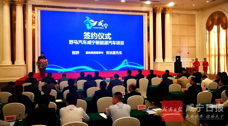 4月12日,咸寧市舉行野馬汽車咸寧新能源汽車項(xiàng)目簽約儀式。市委書(shū)記、市人大常委會(huì)主任丁小強(qiáng),富臨集團(tuán)董事長(zhǎng)安治富,市委副書(shū)記、市長(zhǎng)王遠(yuǎn)鶴,富臨集團(tuán)副總經(jīng)理藤明波,四川野馬汽車股份有限公司總經(jīng)理譚建偉見(jiàn)證簽約。