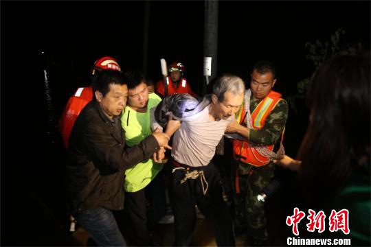 在黃沙鎮(zhèn)萬(wàn)家鄉(xiāng)上泥湖村,被困村民大多是老人。救援人員攜帶救生圈、大繩、救生衣到達(dá)受災(zāi)房屋,發(fā)現(xiàn)現(xiàn)場(chǎng)水深已達(dá)3米至4米,且水下環(huán)境復(fù)雜,積水深處水深達(dá)5米左右。面對(duì)狂風(fēng)暴雨,消防官兵挨家挨戶搜救,將被困人員逐個(gè)轉(zhuǎn)移至安全地帶。