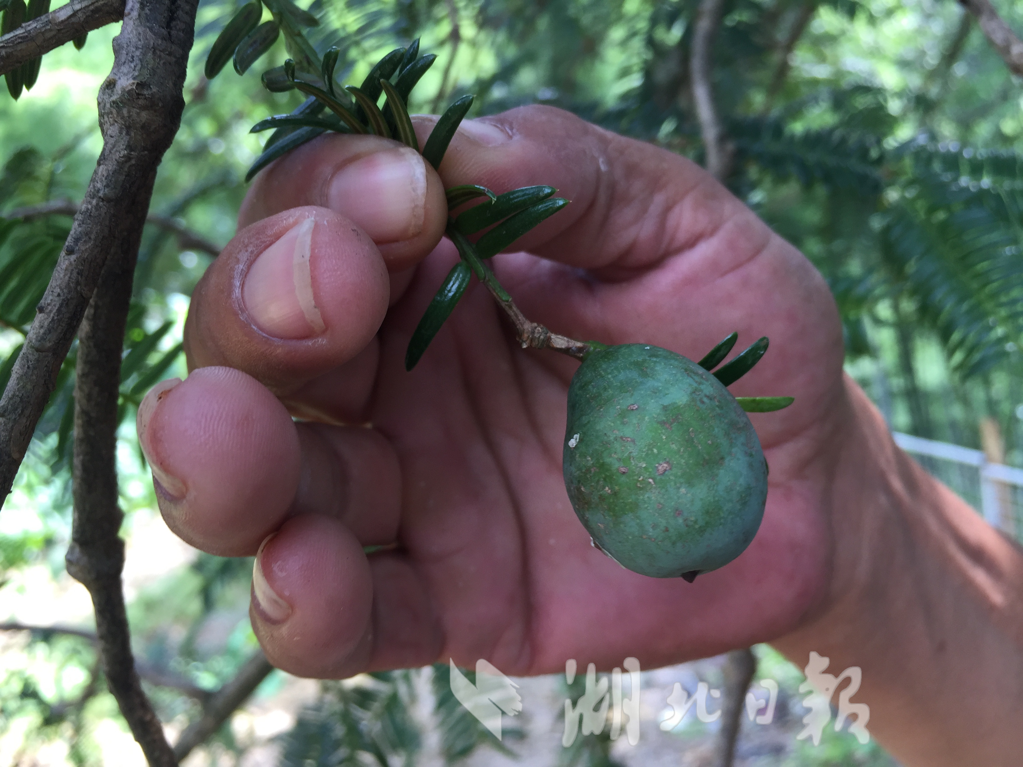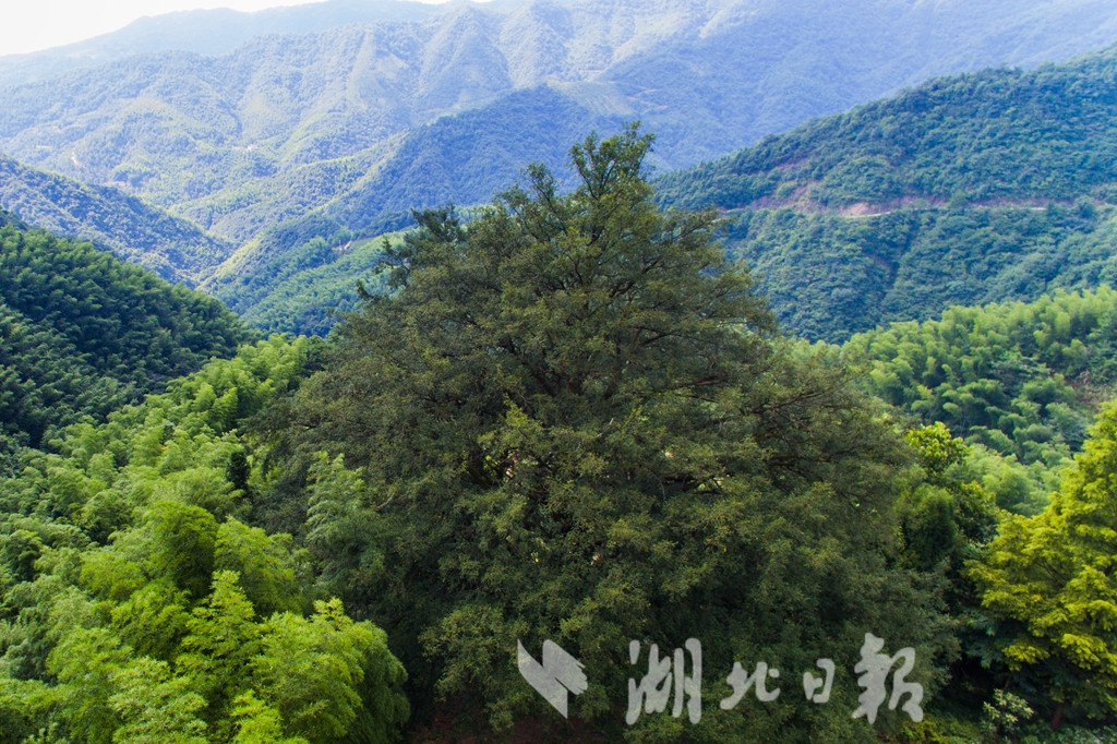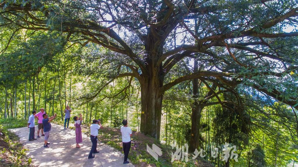 湖北日?qǐng)?bào)訊(記者 陳勇 通訊員汪佳、黎志遠(yuǎn))7月16日,在崇陽縣港口鄉(xiāng)大東港村,兩棵古香榧樹歷經(jīng)千年仍枝繁葉茂、碩果累累,令游客驚嘆不已。這棵雌性香榧樹高25米,樹冠面積約有650平方米,胸圍4.9米,估測(cè)樹齡在980年至1200年之間。香榧,紅豆杉科,中國(guó)原產(chǎn)樹種,是世界上稀有的經(jīng)濟(jì)樹種。崇陽縣林業(yè)部門在幕阜山南坡發(fā)現(xiàn)這兩株古香榧樹,認(rèn)為有很高的科研和經(jīng)濟(jì)價(jià)值,列入一級(jí)保護(hù)的古樹名單。