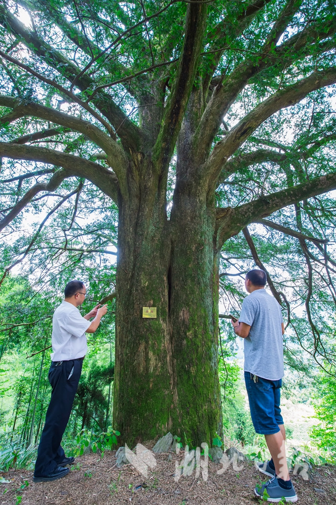 這棵雌性香榧樹胸圍4.9米。