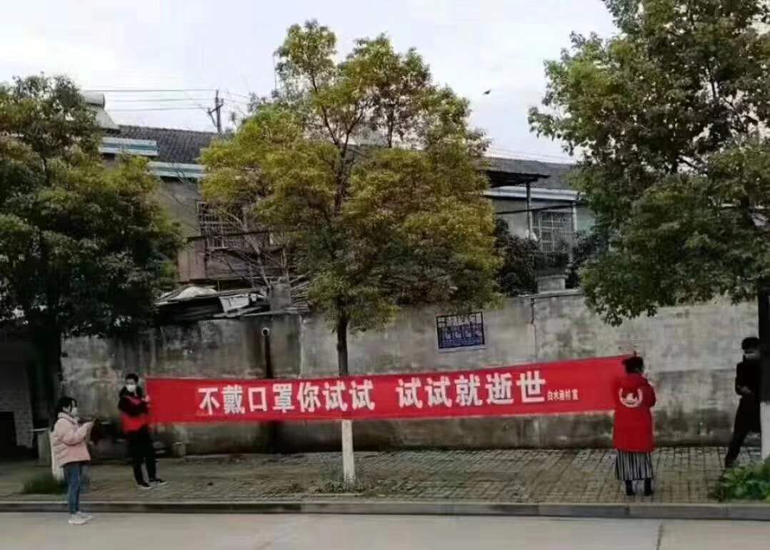 “話糙理不糙,我們都支持?!痹诟∩睫k事處白鶴農場值守卡點,村民余杰對隨處可見當?shù)匦麄鳂苏Z十分理解,說可以震懾少部分不配合防疫工作的群眾。