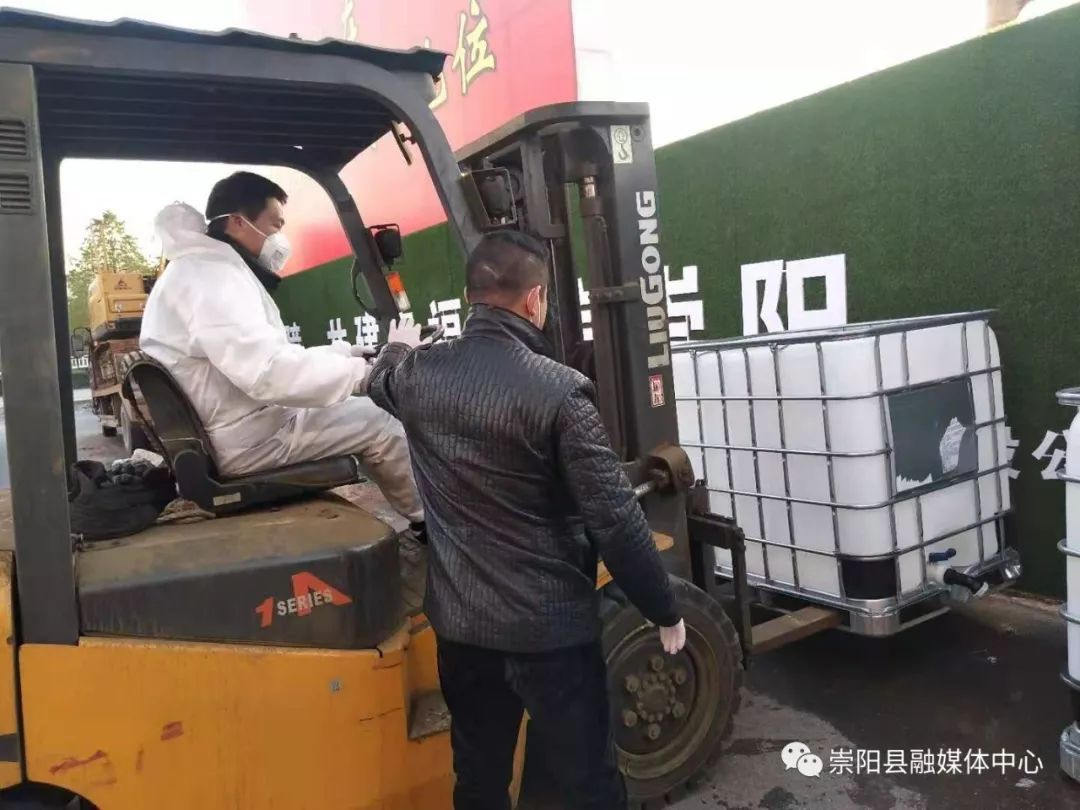 1月30日,河北省唐山瑞隆交通設(shè)施有限公司董事長(zhǎng)郭俊章決定向崇陽(yáng)縣捐贈(zèng)10噸醫(yī)用酒精,并約定在河南省信陽(yáng)市交接。當(dāng)晚9時(shí),石強(qiáng)緊急聯(lián)系好拖運(yùn)車(chē)輛,并親自帶隊(duì),帶領(lǐng)?;陕毠ひ煌瑓⒓涌缡⊥线\(yùn)任務(wù)。