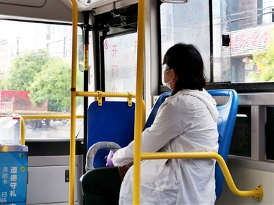 “請(qǐng)出示綠色健康碼,這個(gè)是規(guī)定,希望大家配合?!?5日,楓丹公交監(jiān)督員王大姐戴著口罩,手里拿著本子和筆,坐在離車門最近的座位,逐一查看乘客登記情況。按照往常,每輛公交車只有一個(gè)司機(jī)師傅,乘客買票上車即可。但現(xiàn)在是防疫的特殊時(shí)期,不能大意。每輛公交除了司機(jī)師傅, 還會(huì)有一位像王大姐這樣的監(jiān)督員,實(shí)時(shí)值守“安全關(guān)卡”。