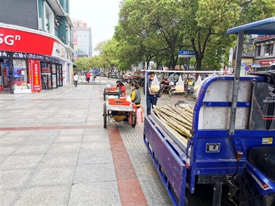 60多歲的李爹爹常年開著三輪車在城區(qū)各處賣水果,這幾天在賣甘蔗,在小區(qū)門口賣了一會(huì)兒后他又來(lái)到中商百貨附近。李爹爹說,現(xiàn)在街上人少,生意沒有以往好。