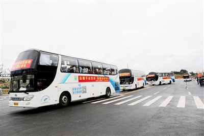 3月30日上午9時(shí)30分,在通山縣文體中心,12輛 “點(diǎn)對(duì)點(diǎn)、一站式”輸送返“粵”務(wù)工人員的愛心大巴專車,載著320名務(wù)工人員一路向南,前往深圳等地返崗復(fù)工,這是目前咸寧市人數(shù)最多的一次“點(diǎn)對(duì)點(diǎn)”輸送。