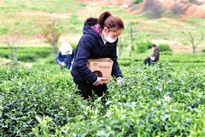 據(jù)了解,該基地由在外創(chuàng)業(yè)回鄉(xiāng)人員于2015年興建,占地500余畝,目前已逐步成園。基地自3月6日復(fù)工以來(lái),日平吸納當(dāng)?shù)貏趧?dòng)力50余人次采茶。