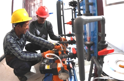 20日,通山縣黃沙鋪鎮(zhèn)萬家水廠,技術(shù)員在對設(shè)備進(jìn)行調(diào)試。