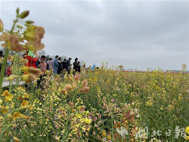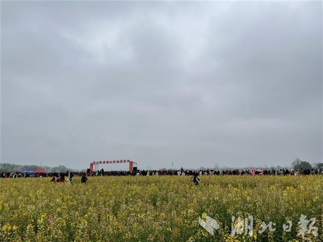 油菜花有普通的黃色、橙黃、桃紅、紫紅等顏色,游客擠在田埂上拍照。青山鎮(zhèn)在菜地里搭起了舞臺,舉辦首屆七彩油菜花節(jié)開幕式,提琴戲、腰鼓等好戲連臺,《我家在崇陽》歌聲在花海中回蕩。