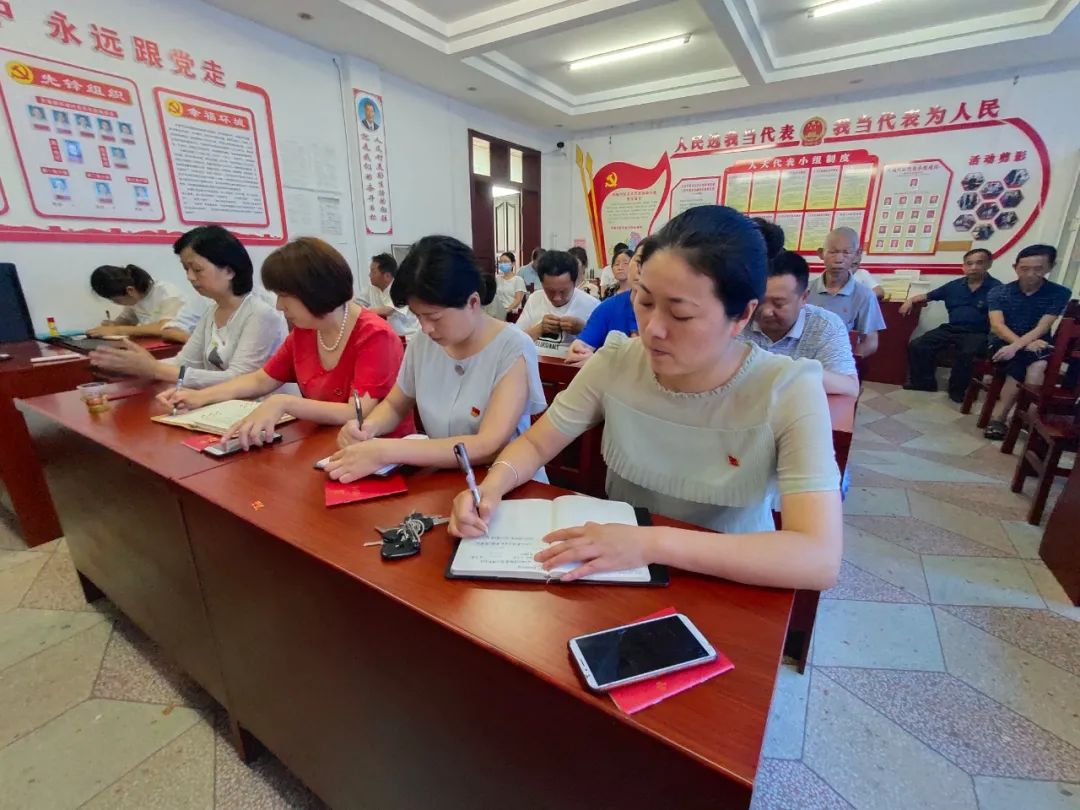 6月29日,駐村第一書記程衛(wèi)華在駐點(diǎn)村講黨課,縣婦聯(lián)機(jī)關(guān)黨支部全體黨員,天城鎮(zhèn)駐村黨員、干部及環(huán)城村黨總支全體黨員一起聆聽。