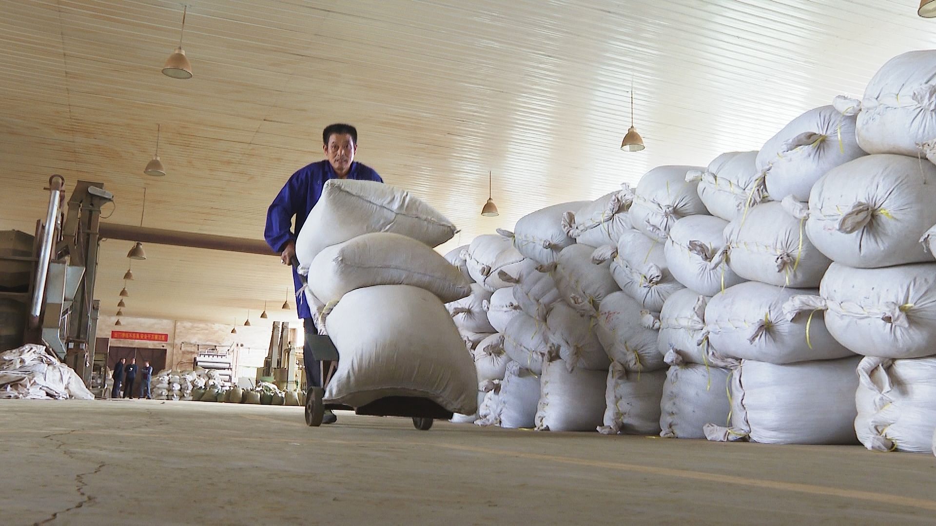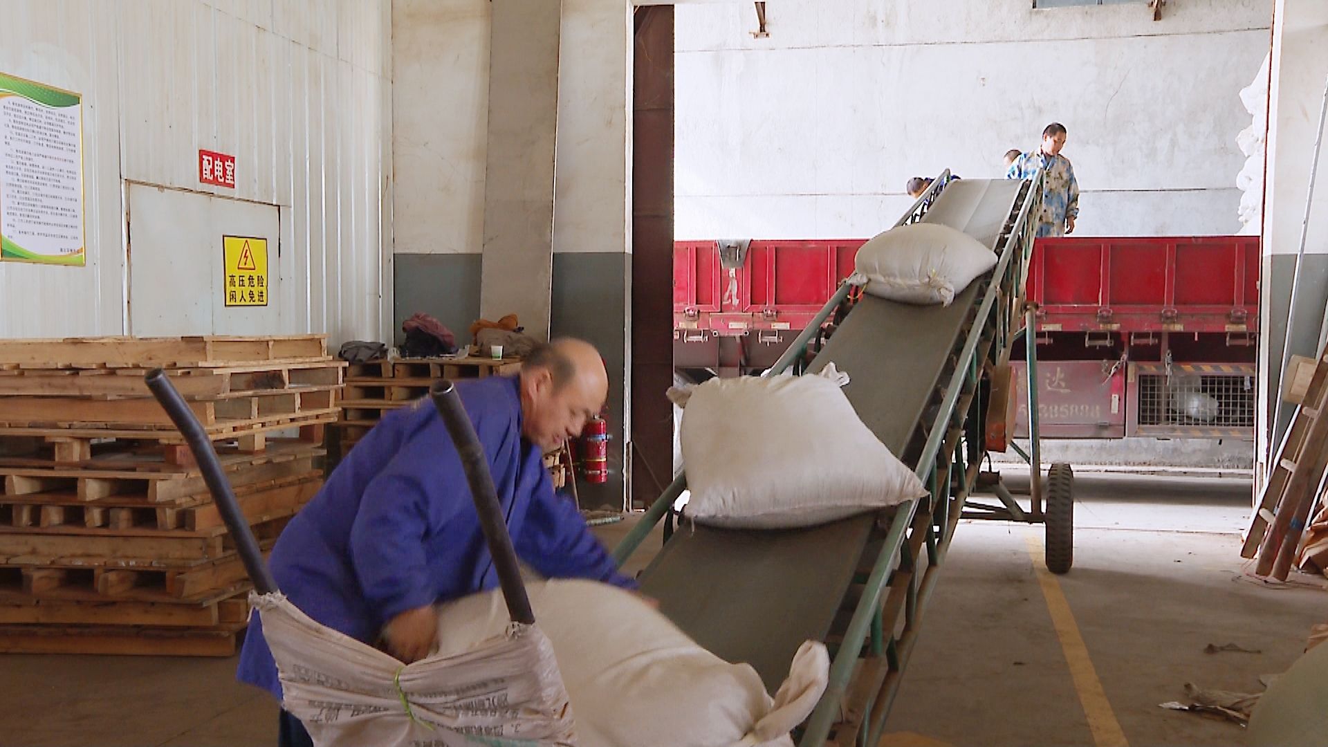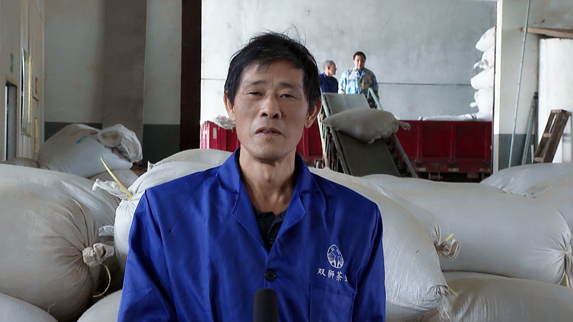 湖北雙獅茶業(yè)股份有限公司總經(jīng)理 薛海宏:我身邊正在裝車的是綠茶,一共有23噸貨,今天發(fā)到安徽省黃山市進行包裝,它的目的地是法國,整個貨柜價值8萬美金。