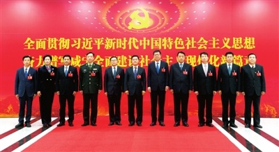 12月7日下午,新當選的中共咸寧市第六屆委員會常務委員會委員集體合影。 咸寧日報全媒體記者 袁燦 攝