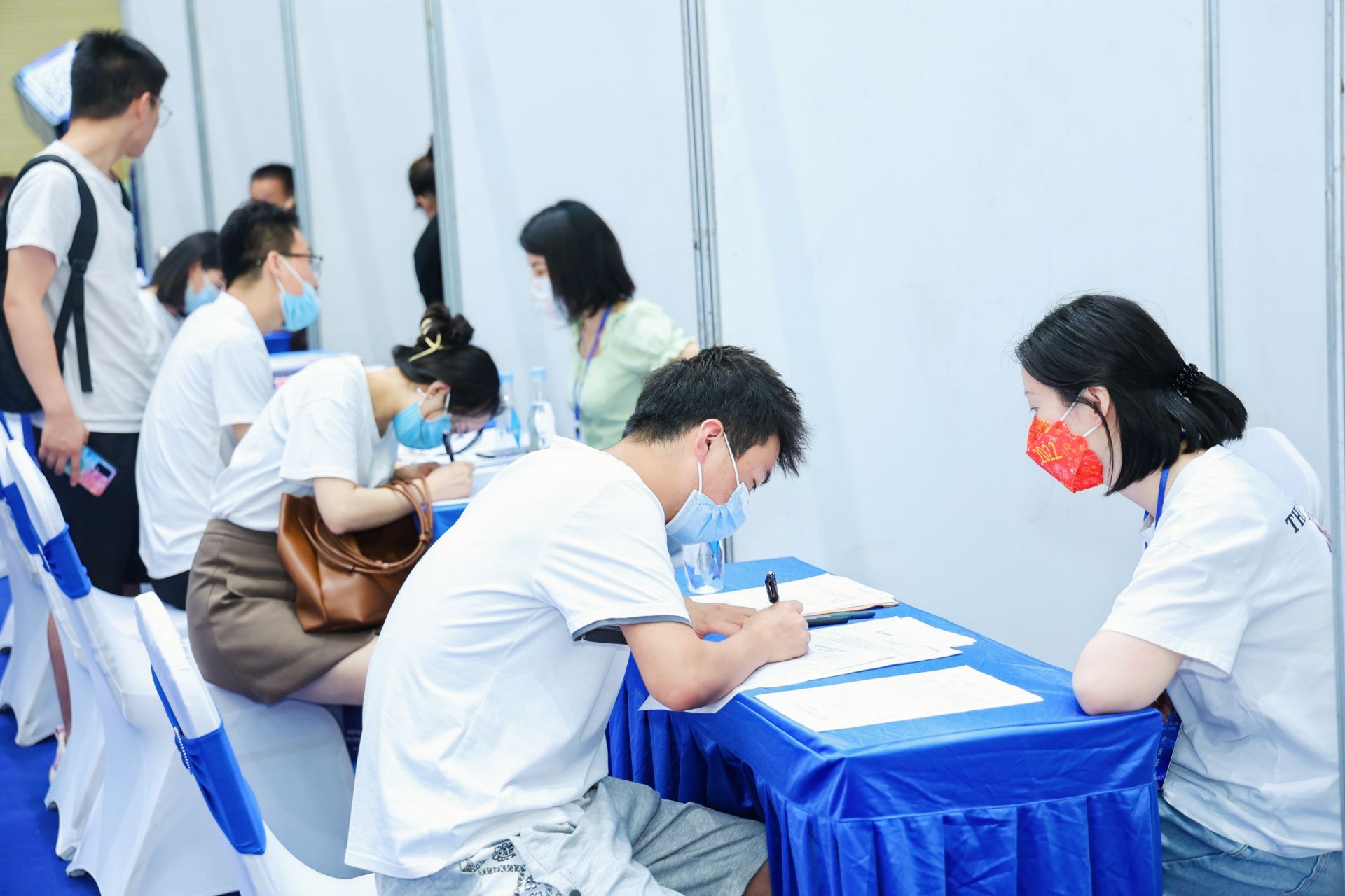“不僅為大學(xué)生就業(yè)提供服務(wù),也要服務(wù)好招聘企業(yè)?!必?fù)責(zé)活動現(xiàn)場組織的向總介紹,通過精心組織,每家企業(yè)一個招聘攤位,專人負(fù)責(zé)招聘,有的企業(yè)單位還主動搞直播招聘,擴(kuò)大宣傳。
