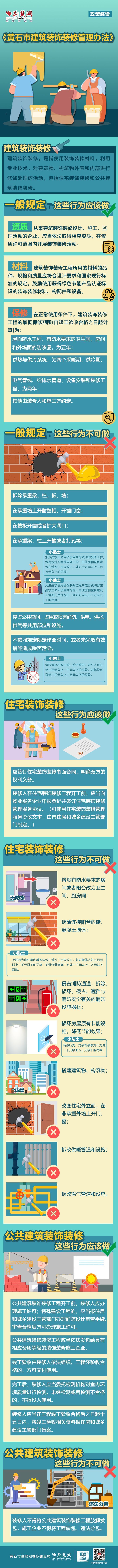 荊楚網(wǎng)(湖北日報網(wǎng))訊(記者阮瓊 劉璐 通訊員李迪)今年5月1日起,《黃石市建筑裝飾裝修管理辦法》正式施行。根據(jù)《辦法》,黃石裝飾裝修應(yīng)該注意什么,具體有哪些是禁止行為?一圖帶您全了解。