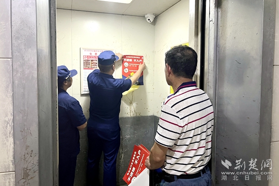 對此,檢查人員要求物業(yè)管理單位要積極通過業(yè)主群發(fā)送安全警示、入戶宣傳提示等方式加強宣傳教育,同時加強日常巡查檢查,及時消除隱患。隨后,檢查人員和物業(yè)人員在小區(qū)宣傳欄、電梯內(nèi)、樓道口等位置張貼電動車消防宣傳海報,提示居民規(guī)范使用電動車。