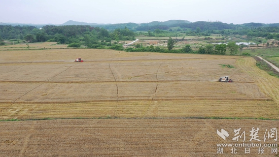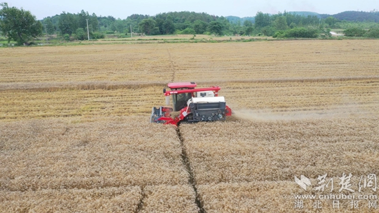 荊楚網(wǎng)(湖北日?qǐng)?bào)網(wǎng))訊(通訊員王煥鑫 余常家)麥浪滾滾,機(jī)器轟鳴。近日,在永佳河鎮(zhèn)尾斗山村的田間地頭,市場(chǎng)主體、種糧大戶們忙著組織農(nóng)機(jī)收割小麥,呈現(xiàn)出一派繁忙的豐收景象。