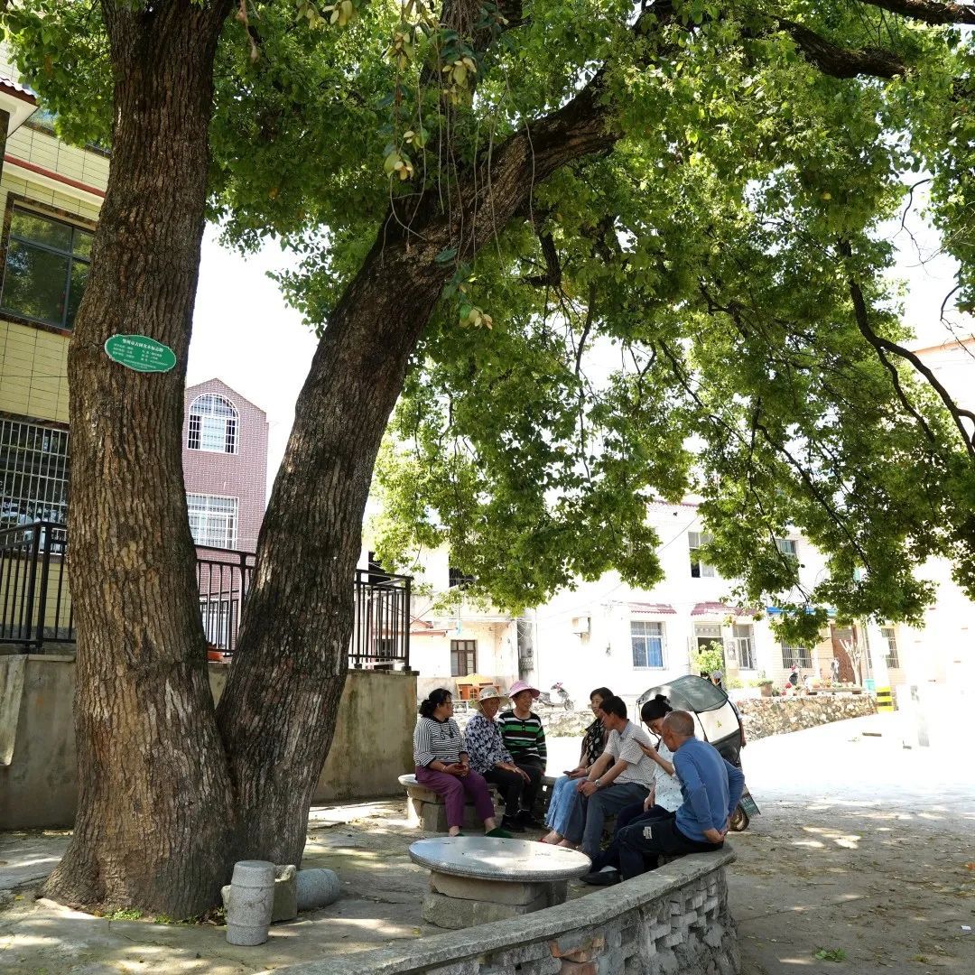 村民們最愛坐在樹下的小石凳上