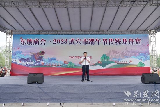 武穴市委常委、宣傳部長葉國慶致辭,希望通過舉辦龍舟賽,進一步弘揚和傳承中華民族優(yōu)秀傳統(tǒng)文化,豐富群眾的文體生活,展示“千年廣濟,多彩港城”文旅品牌。