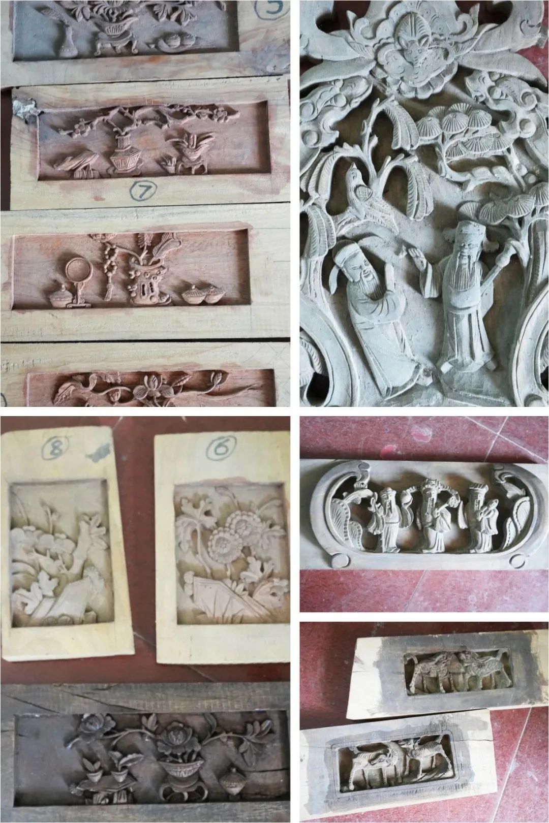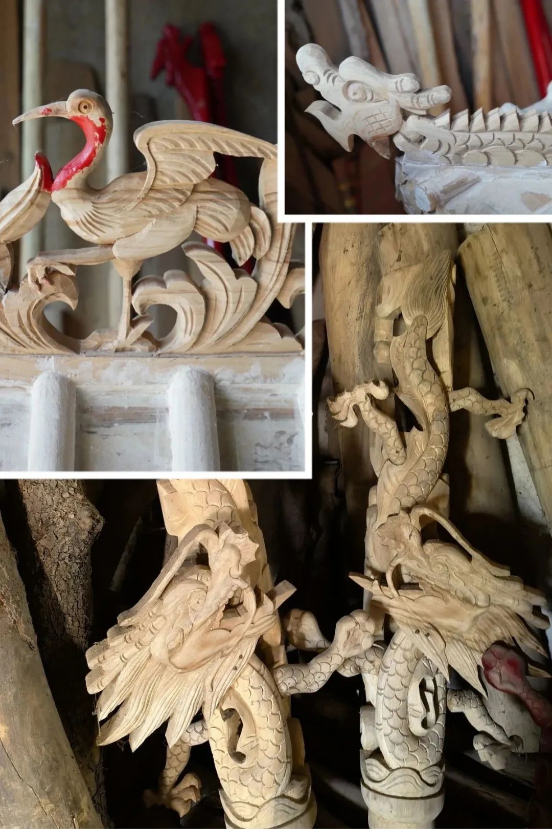 以刻刀為筆龍、鳳、花、鳥、佛等