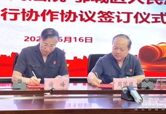 荊楚網(wǎng)(湖北日報網(wǎng))訊(通訊員丁元中)6月16日下午,鄂州市鄂城區(qū)人民法院與黃石市黃石港區(qū)人民法院召開司法協(xié)作共建聯(lián)席會,并簽訂《異地執(zhí)行協(xié)作協(xié)議》,架起跨市執(zhí)行協(xié)作首座橋梁。