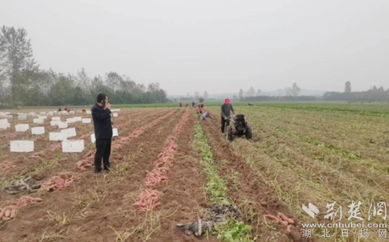 “今年4月份,湖北薯樂(lè)現(xiàn)代農(nóng)業(yè)有限公司專門(mén)請(qǐng)省市的紅薯專家為我們進(jìn)行專業(yè)培訓(xùn)。還將秧苗分發(fā)給周邊村里的農(nóng)戶,等10月中旬紅薯成熟后,公司還會(huì)按高于市價(jià)直接收購(gòu)農(nóng)戶的紅薯?!蹦税杨^上的汗,黎文超笑著說(shuō)。