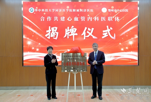 荊楚網(wǎng)(湖北日報網(wǎng))訊(通訊員 高曉東 潘健)11月16日,鄂州市中心醫(yī)院心內(nèi)科與華中科技大學(xué)同濟(jì)醫(yī)學(xué)院附屬同濟(jì)醫(yī)院心內(nèi)科合作共建“心血管內(nèi)科醫(yī)聯(lián)體”簽約揭牌儀式在市中心醫(yī)院學(xué)術(shù)報告廳舉行。