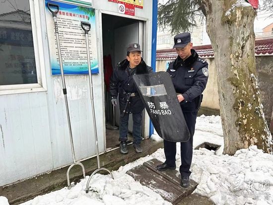 民警檢查校園保衛(wèi)室防暴器材。通訊員 供圖