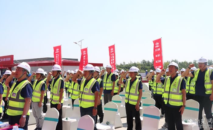 “我是一名光榮的建設(shè)者,面對鮮紅旗幟,莊嚴(yán)宣誓: 快速制勝,安全至上,只爭朝夕創(chuàng)高產(chǎn);精細(xì)管理 創(chuàng)譽創(chuàng)效,銳意進取提質(zhì)效;勇當(dāng)標(biāo)桿,建造精品,實干興企爭一流。我鄭重承諾……堅決做到……”建設(shè)者們的眼中閃爍著堅定的光芒,現(xiàn)場的氣氛被這一番誓言推向了高潮。