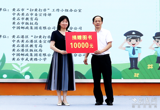 中國郵政集團有限公司黃石城區(qū)分公司副總經(jīng)理柯海平表示,將積極參與“掃黃打非”工作,落實郵政快遞業(yè)“收寄驗視、實名登記、過機安檢”三項制度,加大“畫像法”的宣貫力度,嚴防非法出版物流入寄遞渠道;積極宣傳“掃黃打非”有關(guān)政策法規(guī),引導告知廣大群眾不得寄遞非法有害出版物,共同助力未成年人健康成長,并向黃石市武黃路小學捐贈1萬元圖書。