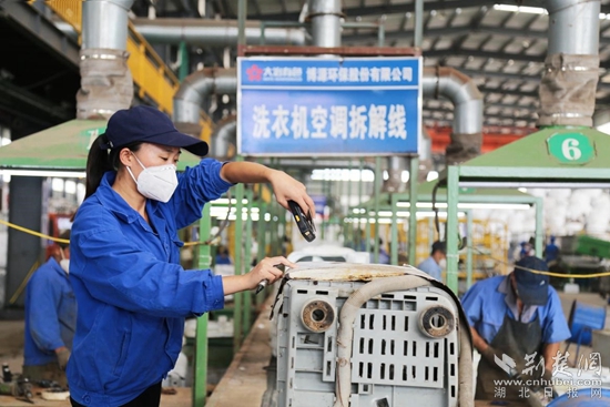 走進(jìn)位于大冶湖高新區(qū)攀宇工業(yè)園博源環(huán)保公司,倉(cāng)庫(kù)內(nèi)廢舊家電堆積如山,拆解線上一片繁忙,一臺(tái)臺(tái)冰箱從流水線上進(jìn)入破碎機(jī)后,經(jīng)過(guò)磁選、色選、比選……塑料、玻璃、金屬各落各袋。該公司副總經(jīng)理劉國(guó)平說(shuō),年處理廢棄電器產(chǎn)能150萬(wàn)臺(tái),僅今年“五一”期間,黃石首屆家電“以舊換新”消費(fèi)展就一次性回收舊家電5000臺(tái),交由博源環(huán)保公司拆解處理。