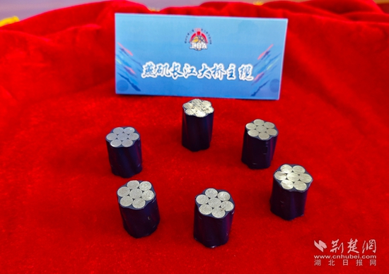 燕磯長江大橋的項(xiàng)目書記、工會(huì)主席喻林峰介紹,這6根鋼索來自燕磯長江大橋的主纜,它是2100兆帕的高強(qiáng)鋼索。燕磯長江大橋是世界最大跨徑四主纜懸索橋,同時(shí)也是世界首座不同垂度四主纜雙層鋼桁梁懸索橋。大橋一共有四根主纜,每根主纜有217根索股,每根索股由127根如此次捐贈(zèng)的鋼索構(gòu)成。