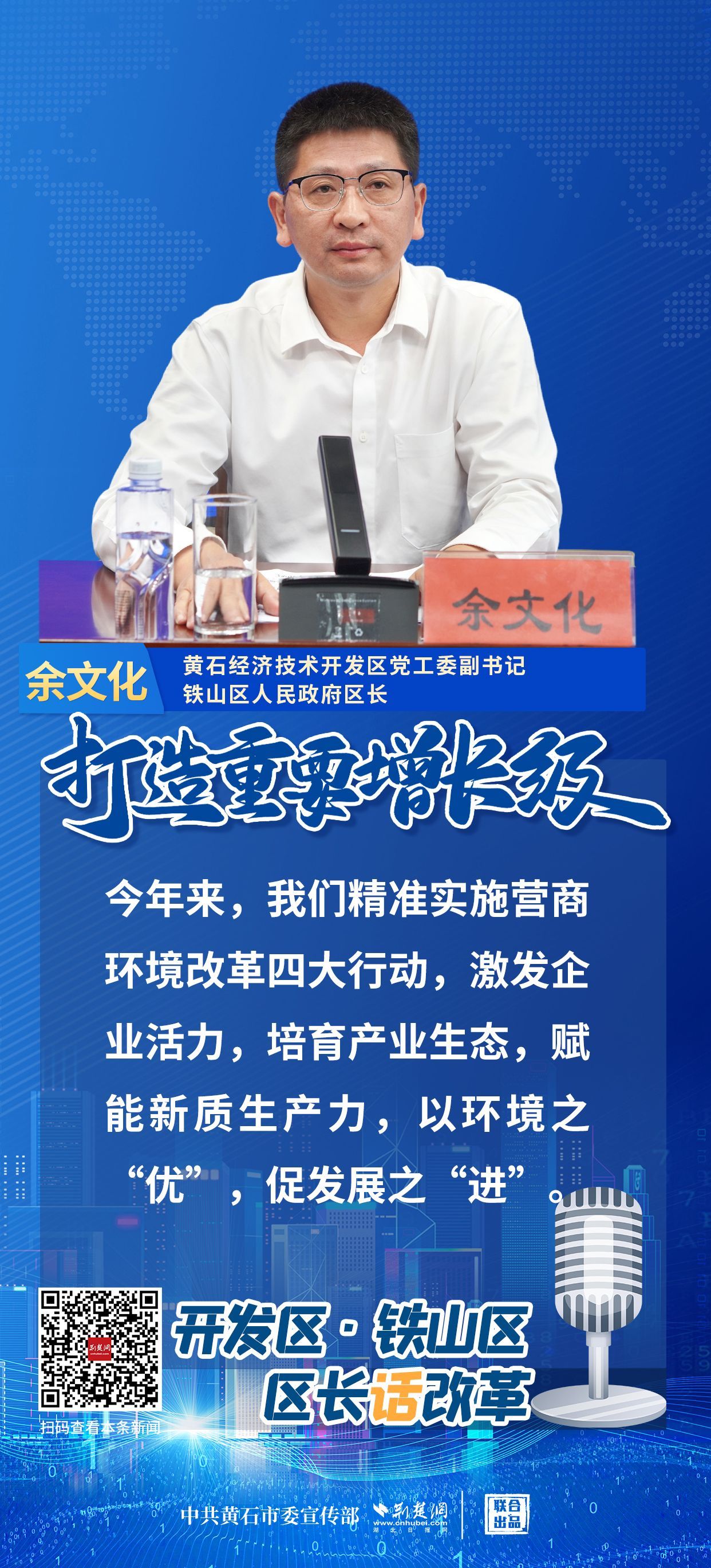 9月26日,黃石市“打造重要增長極 縣(市、區(qū))長話改革”系列新聞發(fā)布會結(jié)束。陽新、黃石港、大冶等黃石7個地區(qū)的主要負(fù)責(zé)人陸續(xù)出席新聞發(fā)布會,話改革、說創(chuàng)新、談打算,摩拳擦掌,砥礪前行,展示打造重要增長極的黃石底氣。