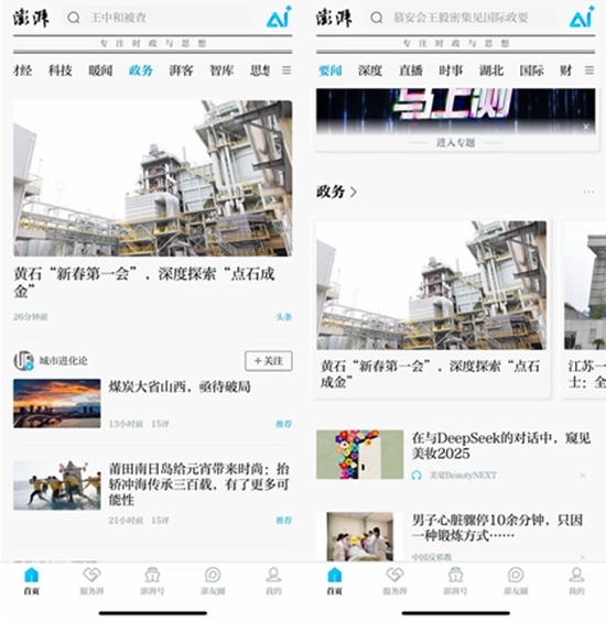 澎湃新聞客戶端首頁、政務頭條推薦,荊楚網首頁要聞推介展示,“黃石發(fā)布”官方微信頭條推送……