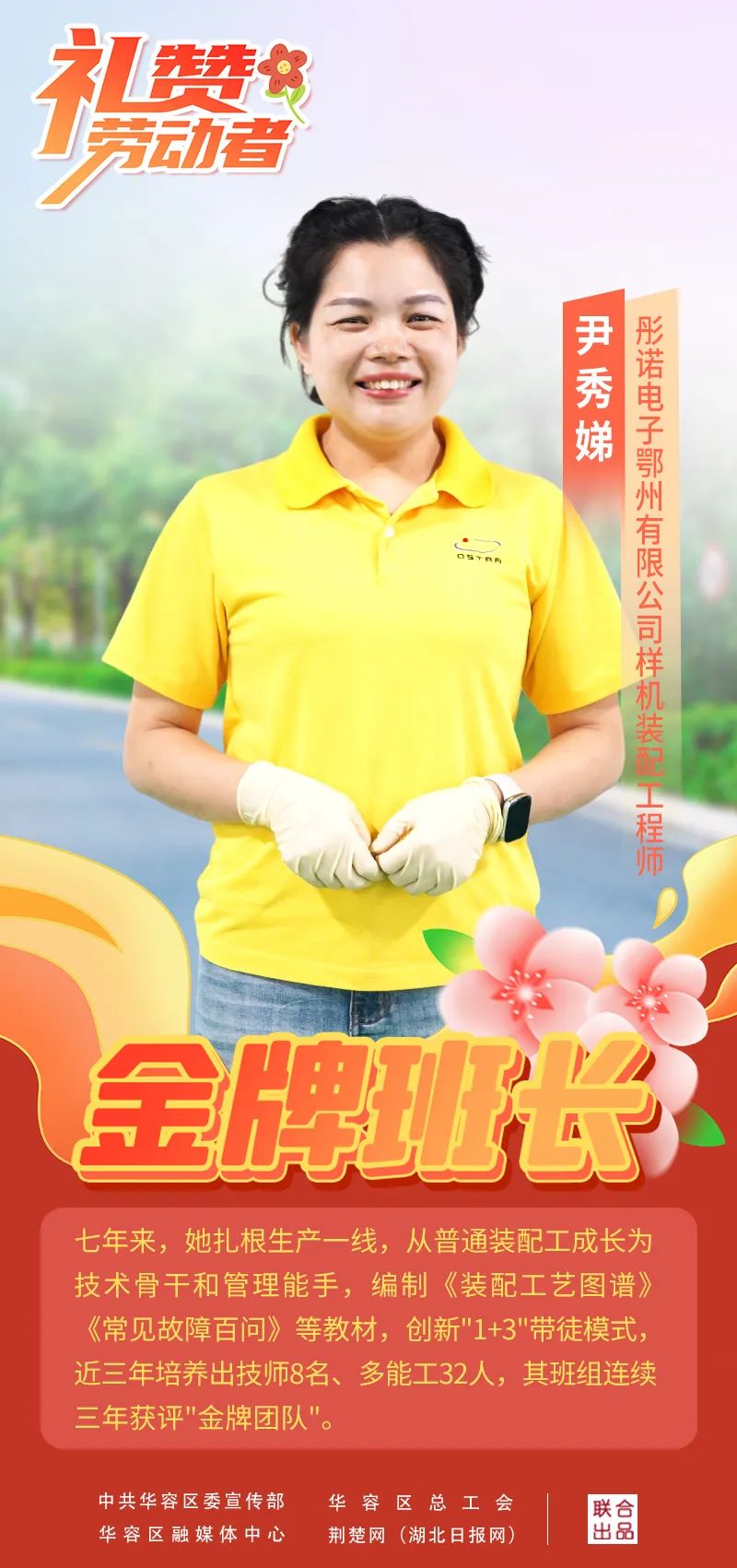 荊楚網(wǎng)(湖北日?qǐng)?bào)網(wǎng))訊(記者陶輝 通訊員張潔瓊 肖運(yùn)泉)17年前,她是廣東電子廠里連二極管正負(fù)極都分不清的懵懂女工。如今,她已成為彤諾電子生產(chǎn)車間“金牌班長”。4月29日,好消息傳來,尹秀娣榮獲鄂州五一勞動(dòng)獎(jiǎng)?wù)隆?/p>