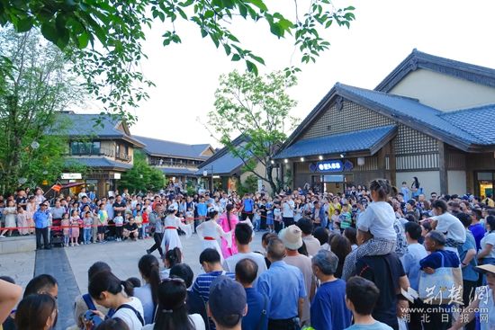 白天,智能機(jī)器人登臺唱起經(jīng)典黃梅戲,聲聲入耳;靈活的機(jī)器狗躍動翻騰,引得觀眾連連喝彩。機(jī)器人巡游隊(duì)伍更是“身懷絕技”,握手、跳舞等表演樣樣在行,游客爭相互動合影。