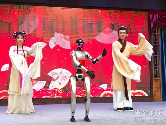 荊楚網(wǎng)(湖北日報(bào)網(wǎng))訊(通訊員 張志林 王晶 梅冠南 熊丹娜)“從沒想過機(jī)器人能唱出這么地道的黃梅戲!”10月2日,在湖北黃梅東山問梅村,來自江西的游客李女士驚喜地說,孩子原本對戲曲興趣不大,可機(jī)器人一亮嗓,他立刻被吸引住了。