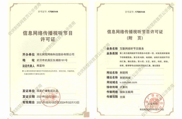 廣播電視節(jié)目制作經(jīng)營(yíng)許可證(鄂)字第00011號(hào)