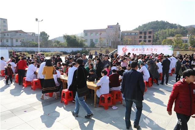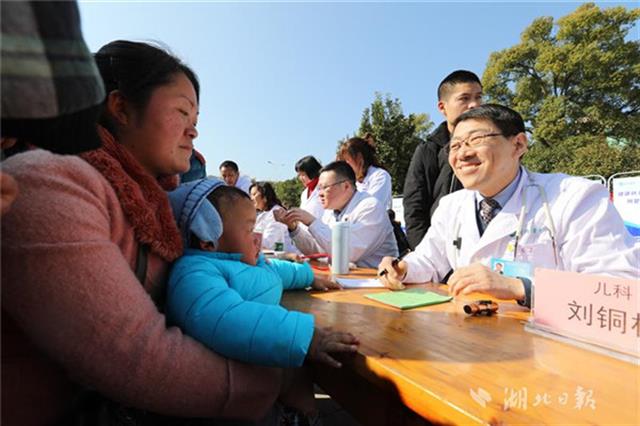 當(dāng)天下午,同濟(jì)醫(yī)院兒科、小兒外科、眼科、耳鼻咽喉科、心臟大血管外科等20位專(zhuān)家團(tuán)隊(duì)來(lái)到咸寧市咸安區(qū)高橋鎮(zhèn)文化廣場(chǎng)為當(dāng)?shù)厣倌陜和M(jìn)行義診,醫(yī)務(wù)人員為孩子們進(jìn)行了兒童常見(jiàn)疾病篩查,細(xì)致地為每一個(gè)孩子做好記錄,并向家長(zhǎng)講解疾病預(yù)防和治療常識(shí),讓孩子們健康平安過(guò)大年。