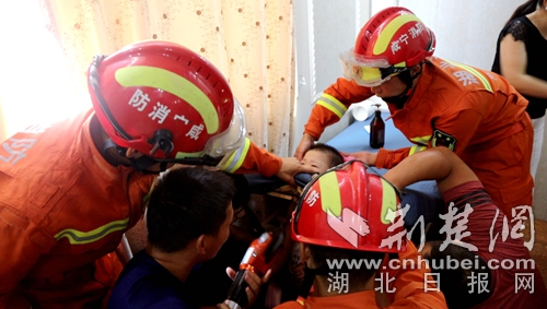 荊楚網消息(通訊員 劉麗娜 朱濤)7月10日15時09分,湖北省咸寧市消防救援支隊指揮中心接到報警稱:通山縣龍鼎麗都美容院2樓小孩頭被卡住,急需救援。接到報警后,通山縣消防救援中隊出動1輛消防車、6名消防指戰(zhàn)員緊急趕赴現(xiàn)場進行處置。