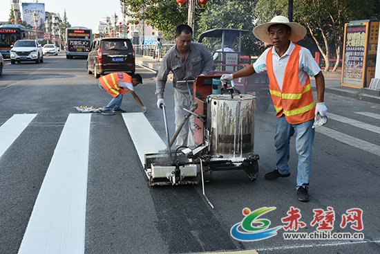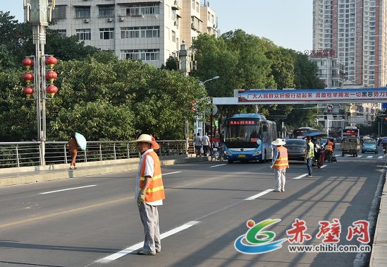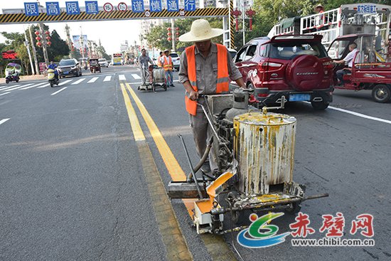 赤壁網(wǎng)消息(記者 聶愛陽)8月6日,記者在一橋路段看到,工人們正在對路面老舊交通標線進行重新噴涂工作。