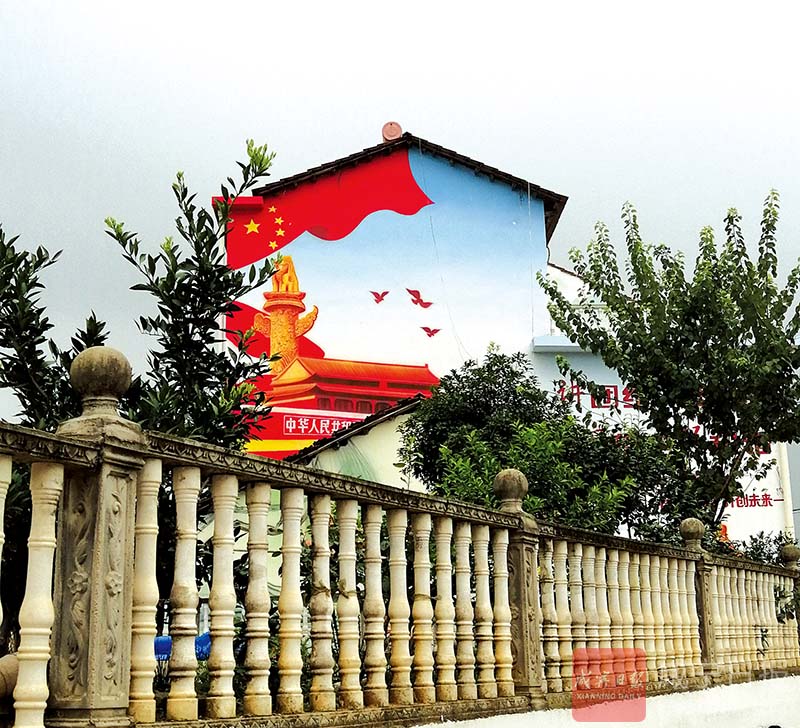像這樣的墻體畫,在該組還有10多幅,內(nèi)容涵蓋社會(huì)主義核心價(jià)值觀、經(jīng)典詩詞、村規(guī)民約等。村干部黃子雨告訴記者,為了美化沿線環(huán)境,該村已經(jīng)先后投入了30萬元建設(shè)美麗鄉(xiāng)村,垃圾被清走,土坡被推平,建起四通八達(dá)的污水管網(wǎng),畫上了靚麗養(yǎng)眼墻體畫,整個(gè)沿線村灣環(huán)境煥然一新。