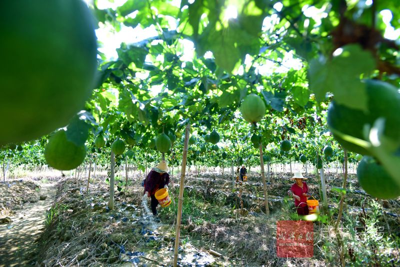 8月20日,赤壁市茶庵嶺鎮(zhèn)云臺(tái)山村豐盈瓜蔞種植農(nóng)業(yè)開(kāi)發(fā)有限公司基地,當(dāng)?shù)剞r(nóng)戶正在施肥。